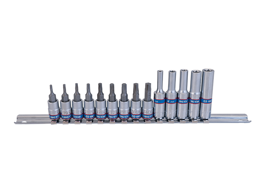 Juego de puntas Torx hembra y macho cuadrante de 1/4 medidas T8, T9, T10, T15, T20, T25, T27, T30, T40 y dados largos torx hembra E4, E5, E6, E7, E8 ( 14Pzas. )